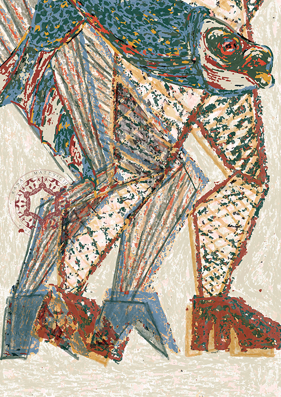 Hand-drawn fish and shoes illustration print: ”Fish & Shoes”, 2025 by Rasa Mateviciute.