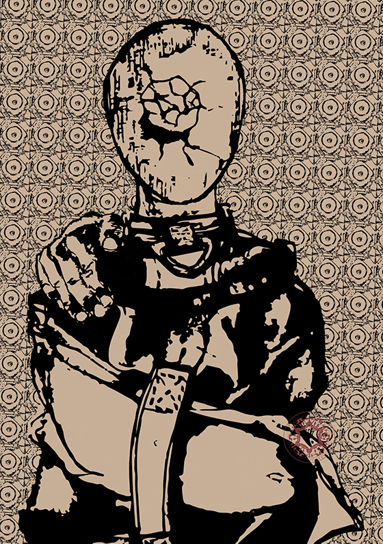 A hand-drawn shell of a person Illustration Print: ”Behind the Shell”, 2024, by Rasa Mateviciute.